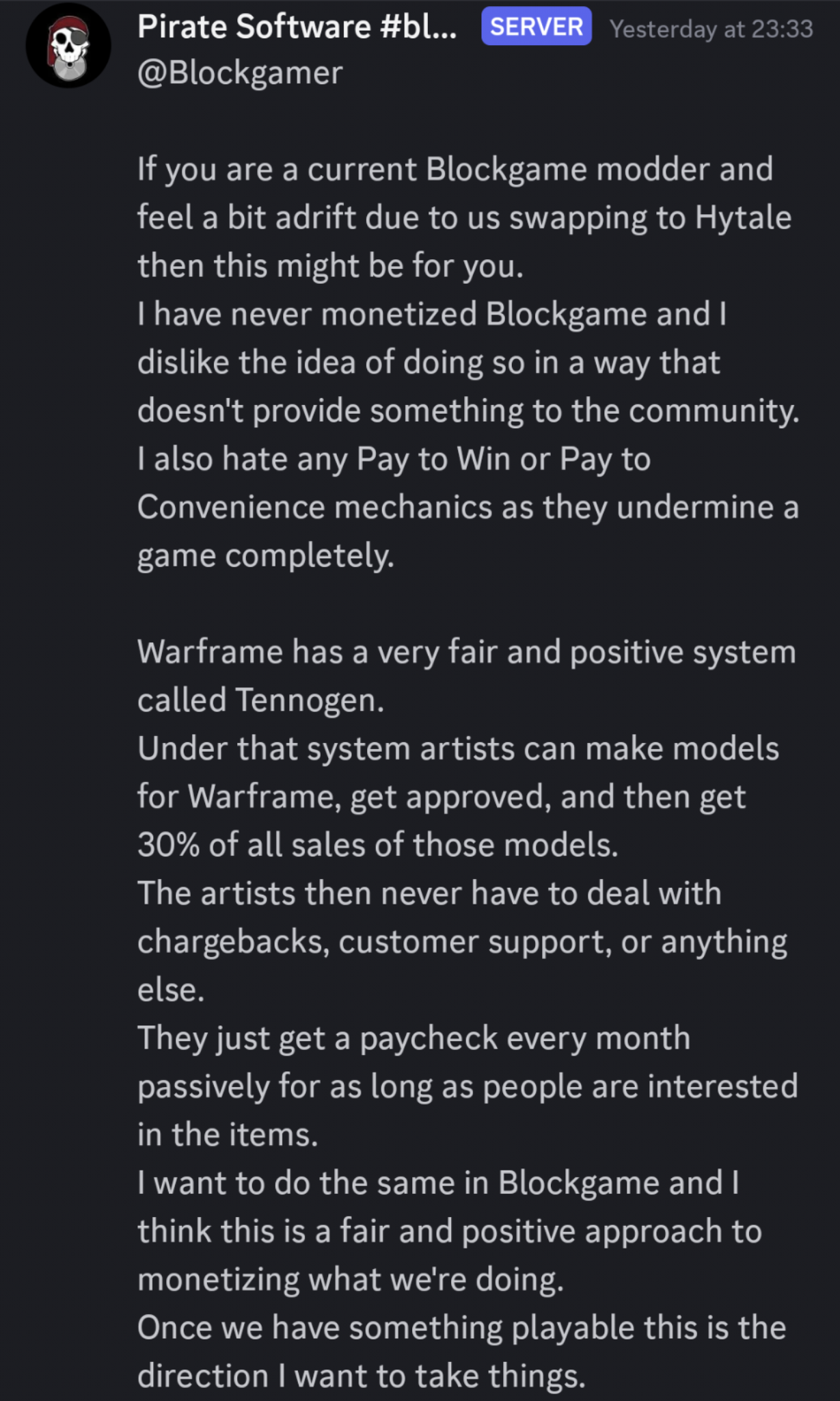 So we have all decided to move over to Hytale, right?It's way more monetizable than Minecraft and everyone seems to like it.