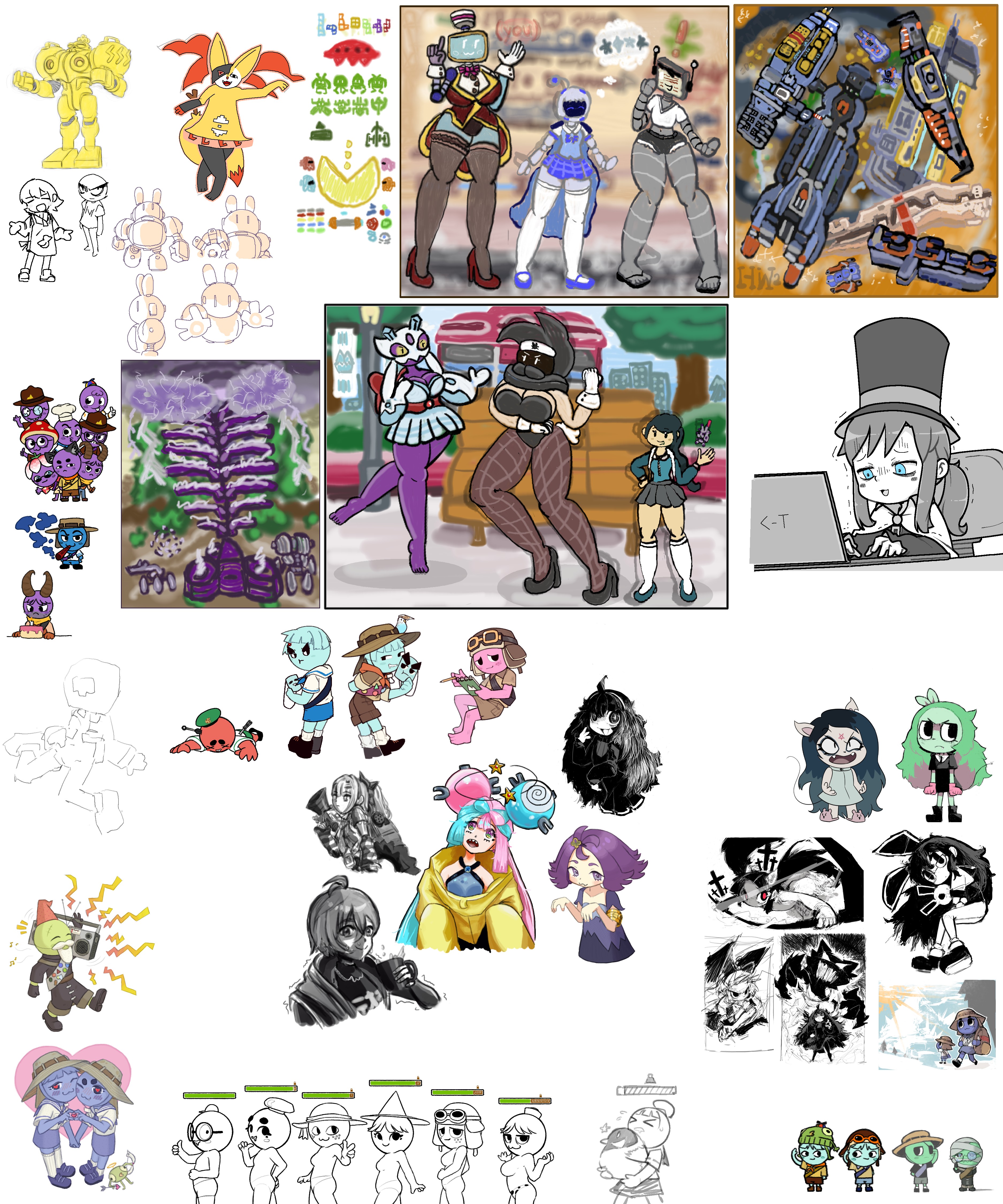 >>730938519I spent ~2 weeks re-drawing the character portraits for the Party Chat system of my fan game. The in-game sprite sheet, if you even want to call it that, is way bigger, too, since every character has around 3 poses as well.Still plan on adding a couple more alternate outfits as well.