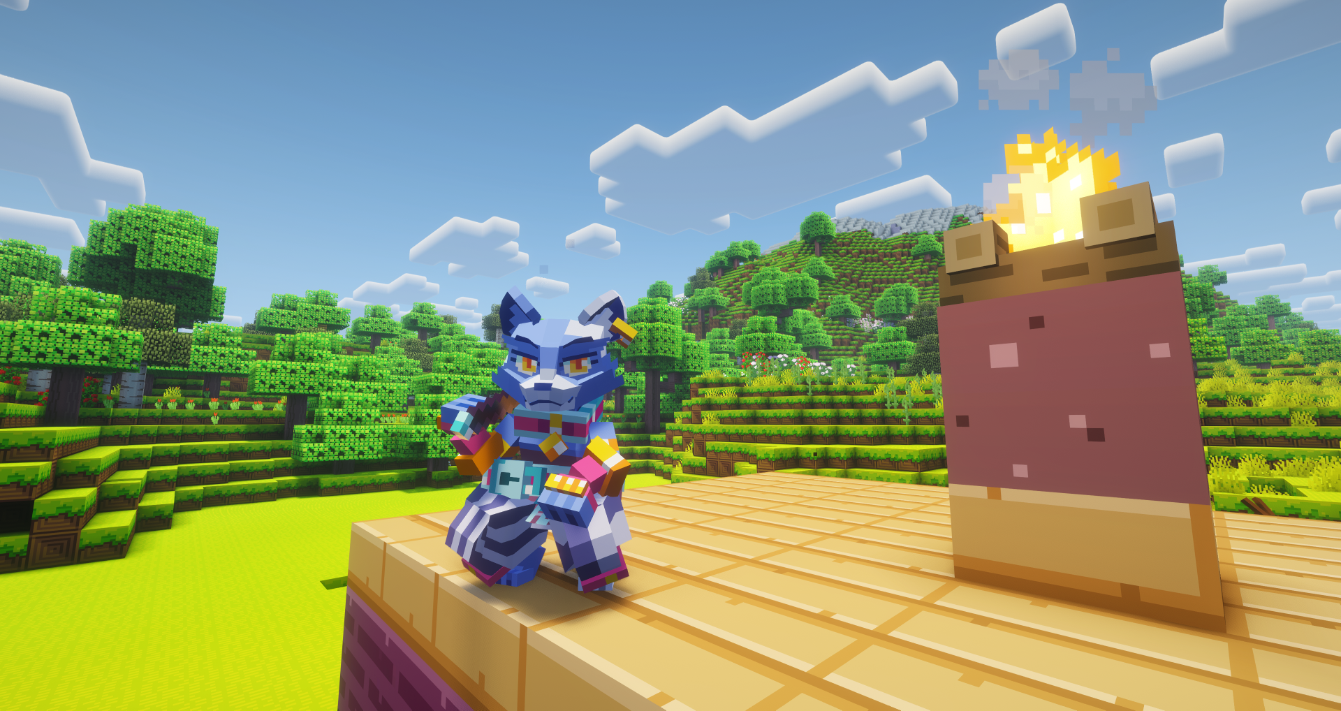 >>730955469Once again: I think the artstyle is retarded. Look at these nice chonky pixels on the ground texture. And then the..straw? Texture seems much finer? And then the texture on the fox thing, isn't blocky or chunky at all. It legit looks like a World of Warcraft texture that someone draped over a blocky model. Minecraft already did it right. Everything has roughly the same level of detail. some blocks are more intricate, sure, but for the most part you don't have textures that look like they're from a fucking different game everywhere.The NPCs in Hytale do not look like they belong in the same fucking world. Just look at this foxes creepy ass eyes. His high def scarf thingie. How is it this difficult to have a consistent artstyle?