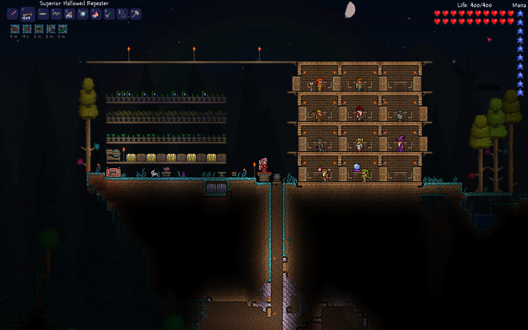 >>731008247>>how much do you play post moonlord?nta but most of my playtime is post-moonlord. that's when you have all the resources you want to build fancy villages and terraform the world however you want without worry about ruining areas for bosses.