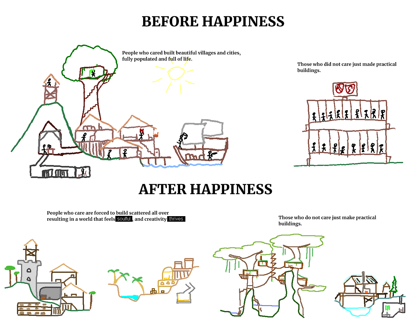 >>730963998Once I realized that building a house out of mud was just like building one out of gold I lost interest in building.