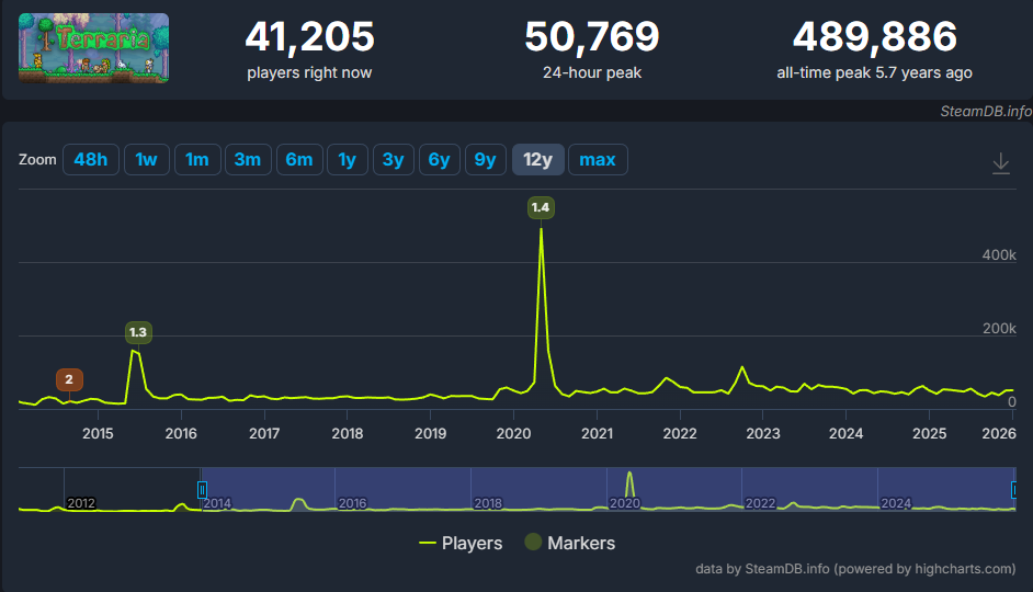Terraria's been arguably content complete for a decade