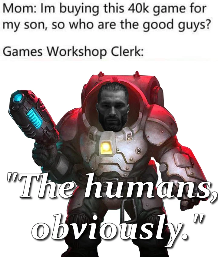 >>730974438Lefty newfags, secondaries and tourists overemphasize the importance of the imperium being dickweeds as central to the setting. The most core theme is bad dudes fighting space wars so GW can sell plastic men.