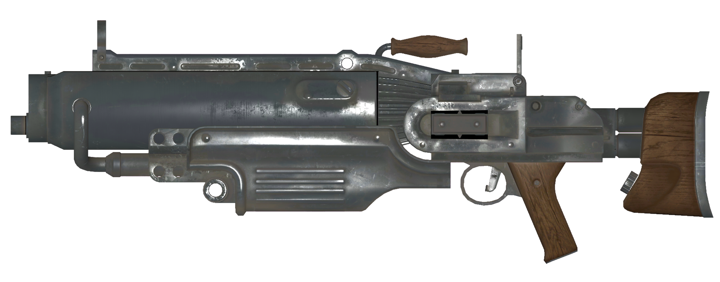 >>730993992why not just copy real gunsall the old fallout games did that, even the kitbashed guns were clearly bit and pieces of real guns. in Tactics you were using Mac 10s and AK-47s. Why would anyone develop some stupid looking chonk of an assault rifle when weapon tech was clearly parallel to real life