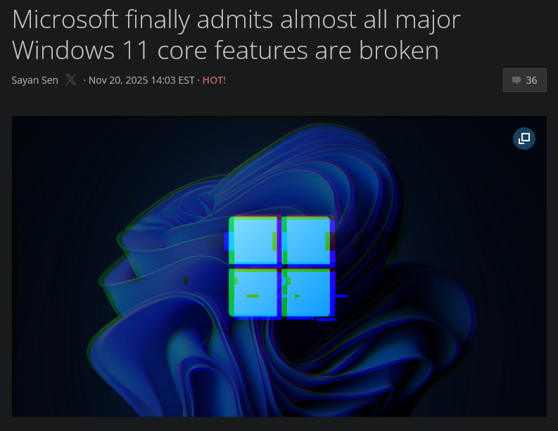 I hope Windows 11 gets it shit together before the 5080 Super comes out and I buy a prebuilt with Windows 11.