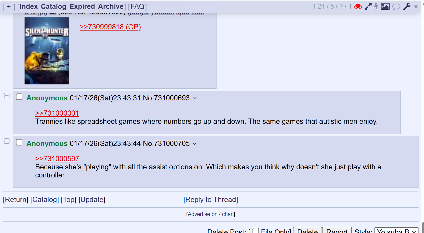>>731000982>>731000880>>731000970Yes, Hearth of Iron series must be up there for least female friendly game. It's mixing war strategy autism with supply line management. Plus if you play multiplayer or mod the game you have to interact with a fanbase that is 1/4 naziboo, 1/4 sovietboo, 1/4 imperial weeboo and the last fourth focused on France/Britian colonymaxxing, basically everything that the current year young western females are brainwashed from birth to socially filter as the bad goy options. However it's filled to the brim with trannies.