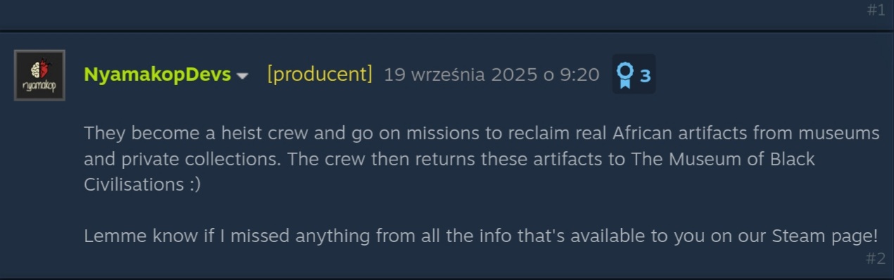 >"Africanfuturist heist game where you plan for high-risk missions. The targets? Real African artifacts, like the Cameroonian Bangwa Queen and the Ghanaian Asante Gold Mask."Are we excited for this one? Honestly if they play the afro-futurist vibe straight like the old blaxploitation films from back in the day I think it could be unironically kinohttps://store.steampowered.com/app/3255890/Relooted/