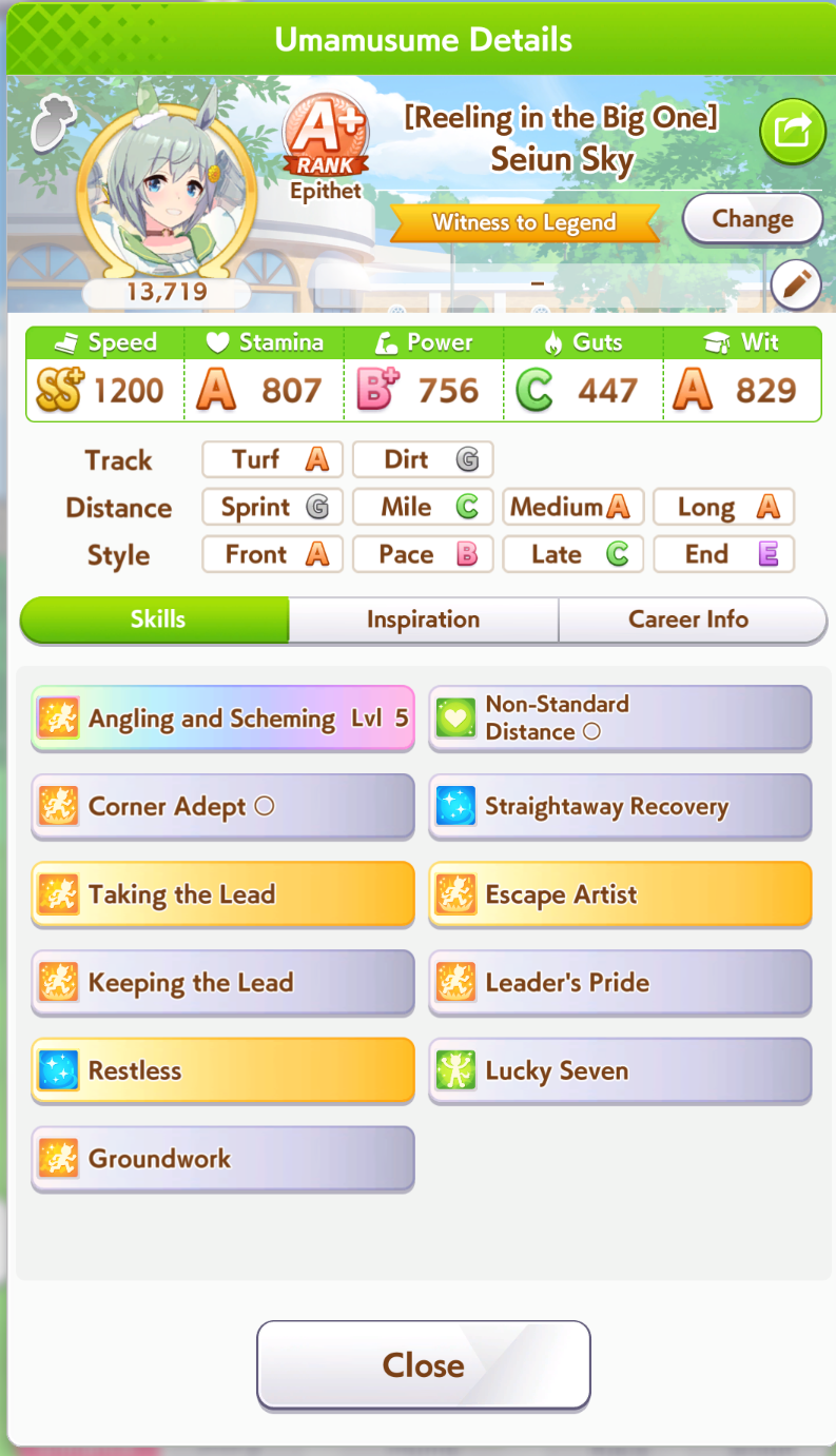 >>731011105I don't have another end closer unfortunately. People were saying to run a front runner to get Oguri to activate No Stopping Me, which sounds reasonable enough but again I'm not exactly sure what I need. IIRC I ran Mayano and Rudolf in the last longslop so maybe I might do that again if another end closer is the way to go.