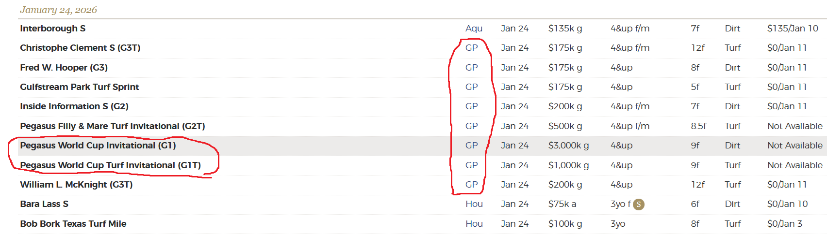 >>731027348That's the a really pretty chestnutter.>>731027423Next weekend for the Pegasus Cup G1s in Florida. There's several races running right now but they all require some sign in of some sort, like Santa Anita is running races right now.