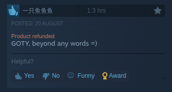 For a game that apparently had so many sales (and no refunds you conspiracy theorists!) it sure got forgotten real quick and nobody is talking about it or trying to make a game like it. Also for newfriends in bad faith you can sort by language in steam reviews, and many anons did just that and shown and discussed the insane amount of Chinese refunds on launch that also had positive reviews.