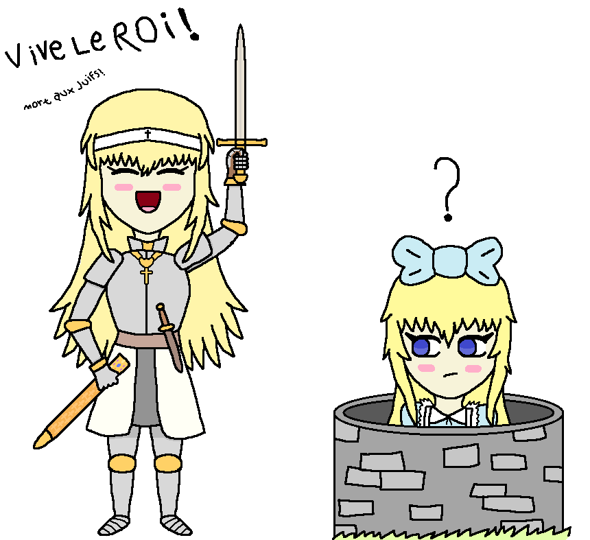 >>731065292It seems "Death to Jews" is written beneath "Vive le Roi".Anyways, I just wanted to post Jeanne.