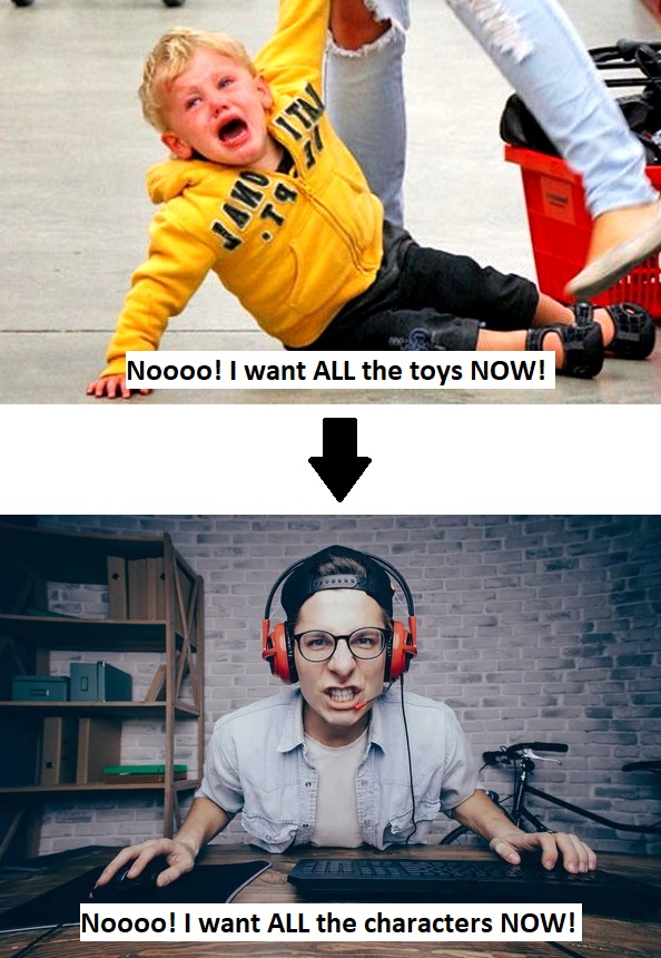 >>731066056I'll play them once I can download whatever game I want and just cheat unlock characters when they make sense narratively. Making you believe a character is worth hundreds of dollars and a gambling addiction is the greatest psyop in the history of videogames.