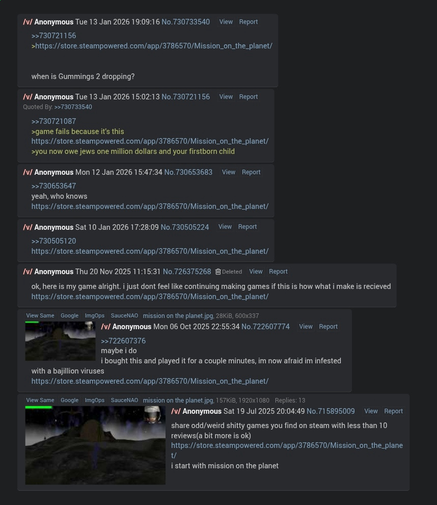 >>731072918here is my game, plase boughtedhttps://store.steampowered.com/app/3786570/Mission_on_the_planet/
