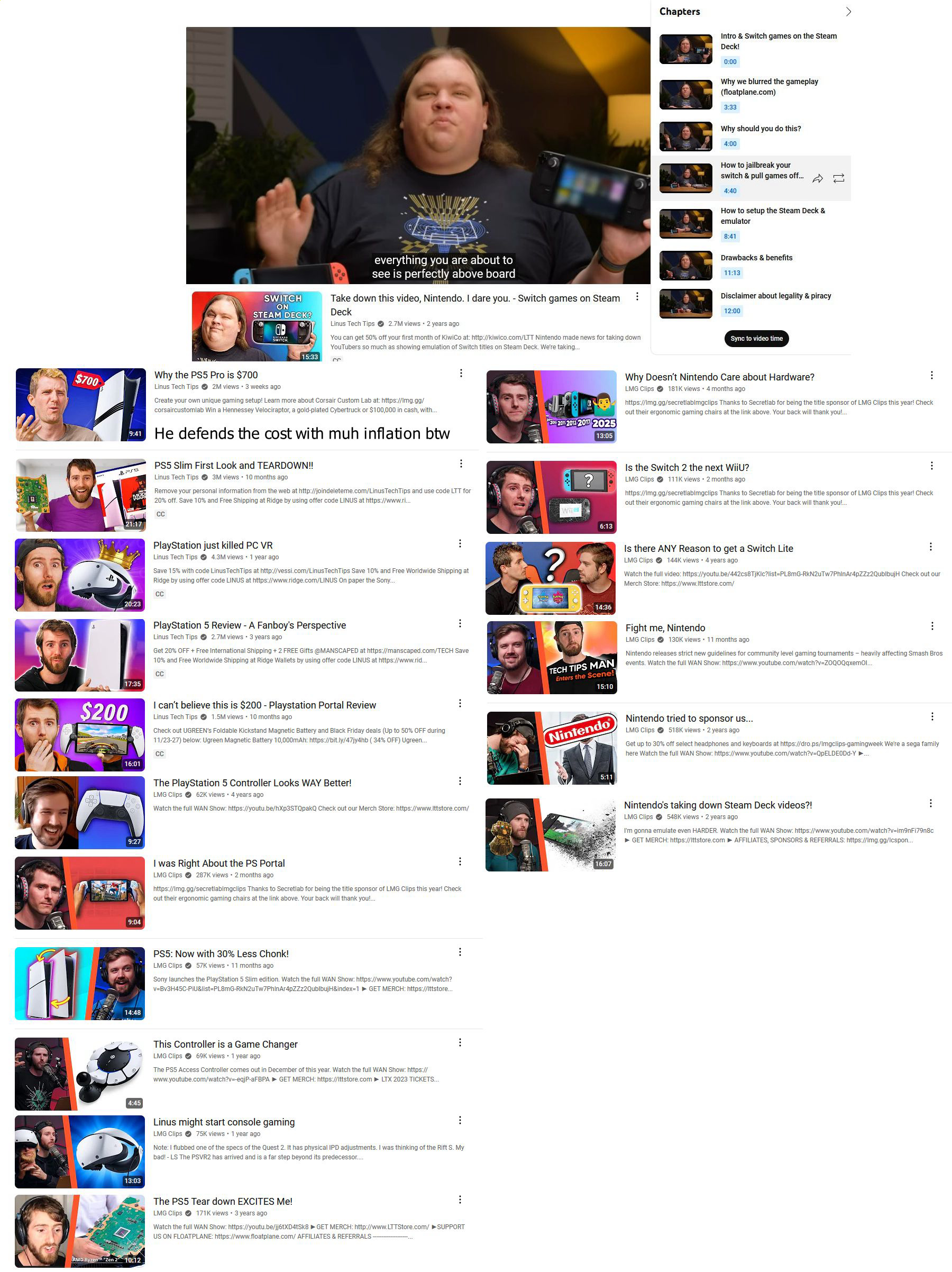 >Linus calling out Nintendo again for their pricing