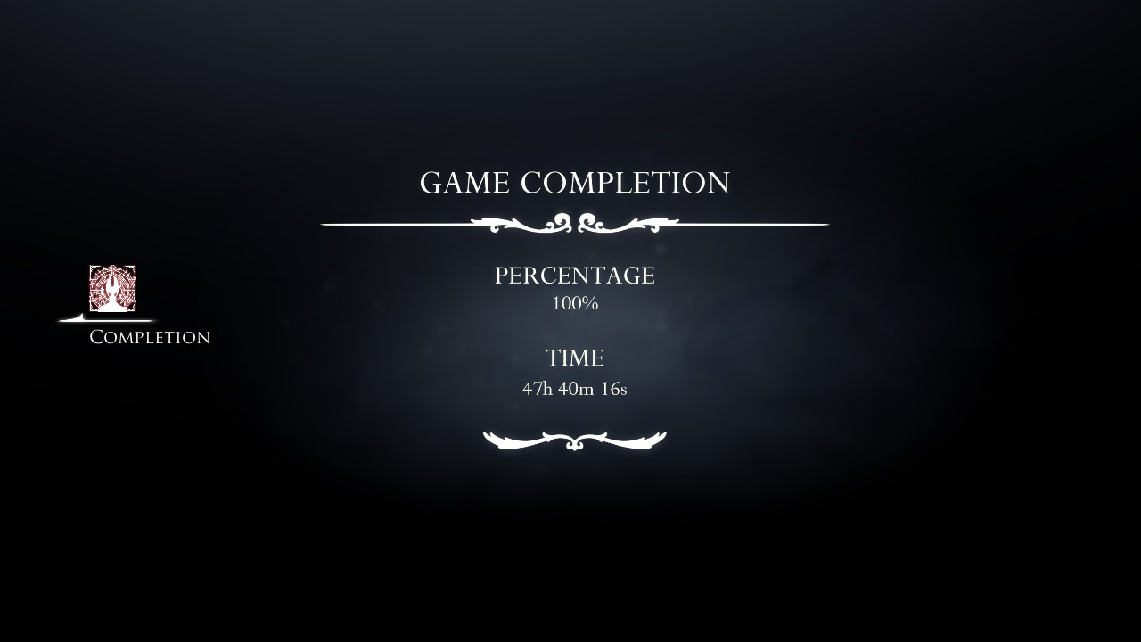 >60 hours for the true ending>90 hours to get 100%This is too long for a Metroidvania and ruins replay value. It should be a third of the length.