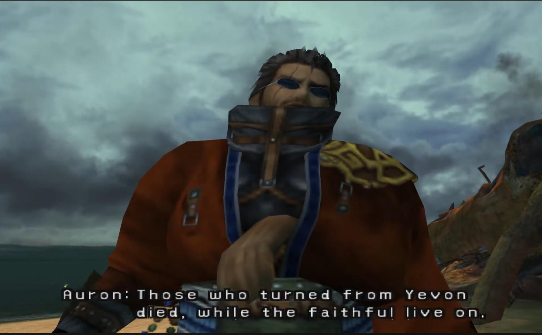 >>731090364>Auron walks up just to aura farm with wise words for Tidus and mock the religious dudes for retreatingdead badass guy: "A swift retreat."dead priest guy: "What do you mean?"dead badass guy: "Those that turned from Yevon died, while the faithful live on."ordinarily you'd think someone couldn't be this cool but he isby the way, WHAT THE FUCK is wrong with the captcha system