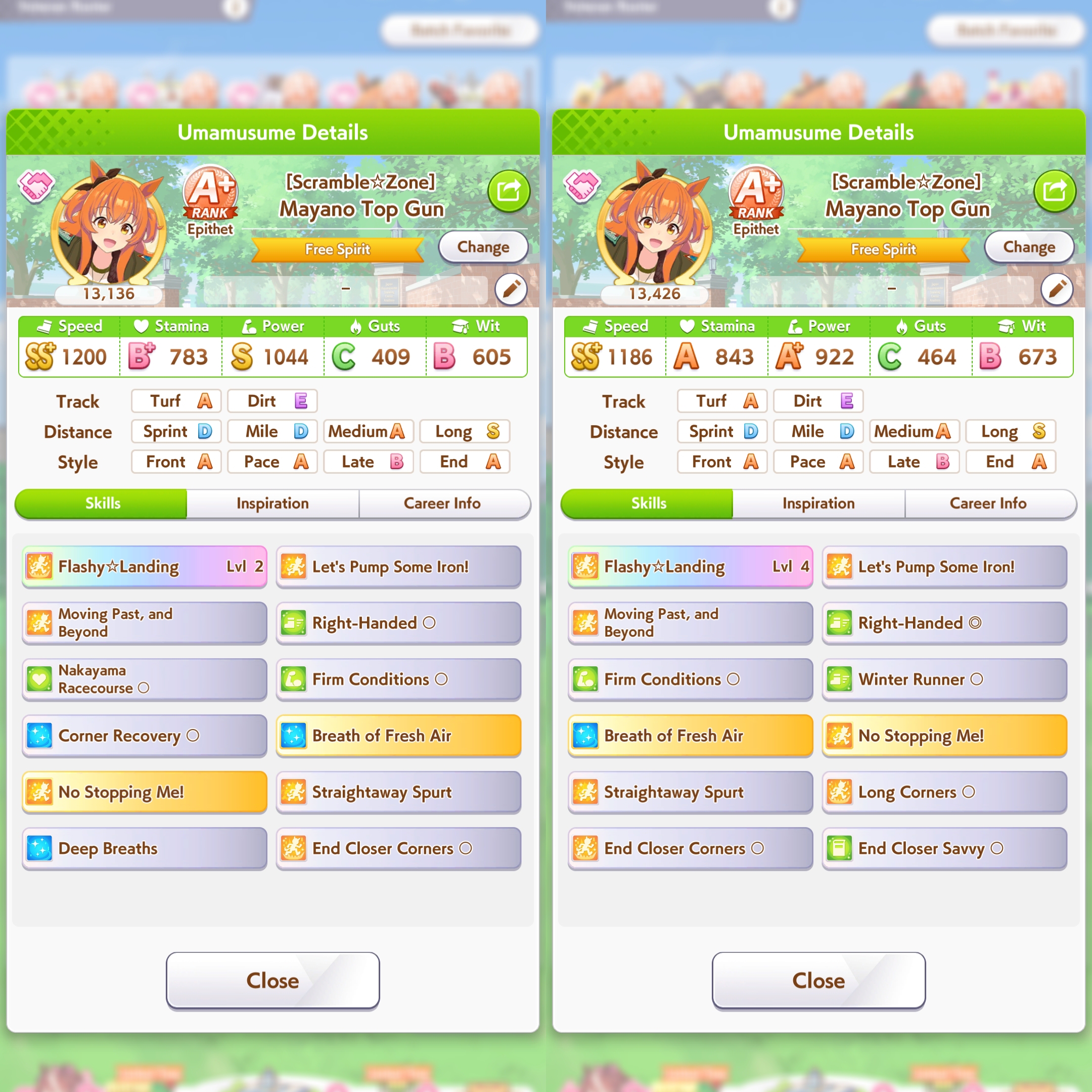>>731140170Right has a wit and guts advantage, so she's more likely to activate skills and has a greater last spurt speed, with a skill advantage.The loss of speed due to the uphill should not be enough to make up for the speed difference.In the CM, it could go either way with ease, but I'd argue the right has a statistical advantage.