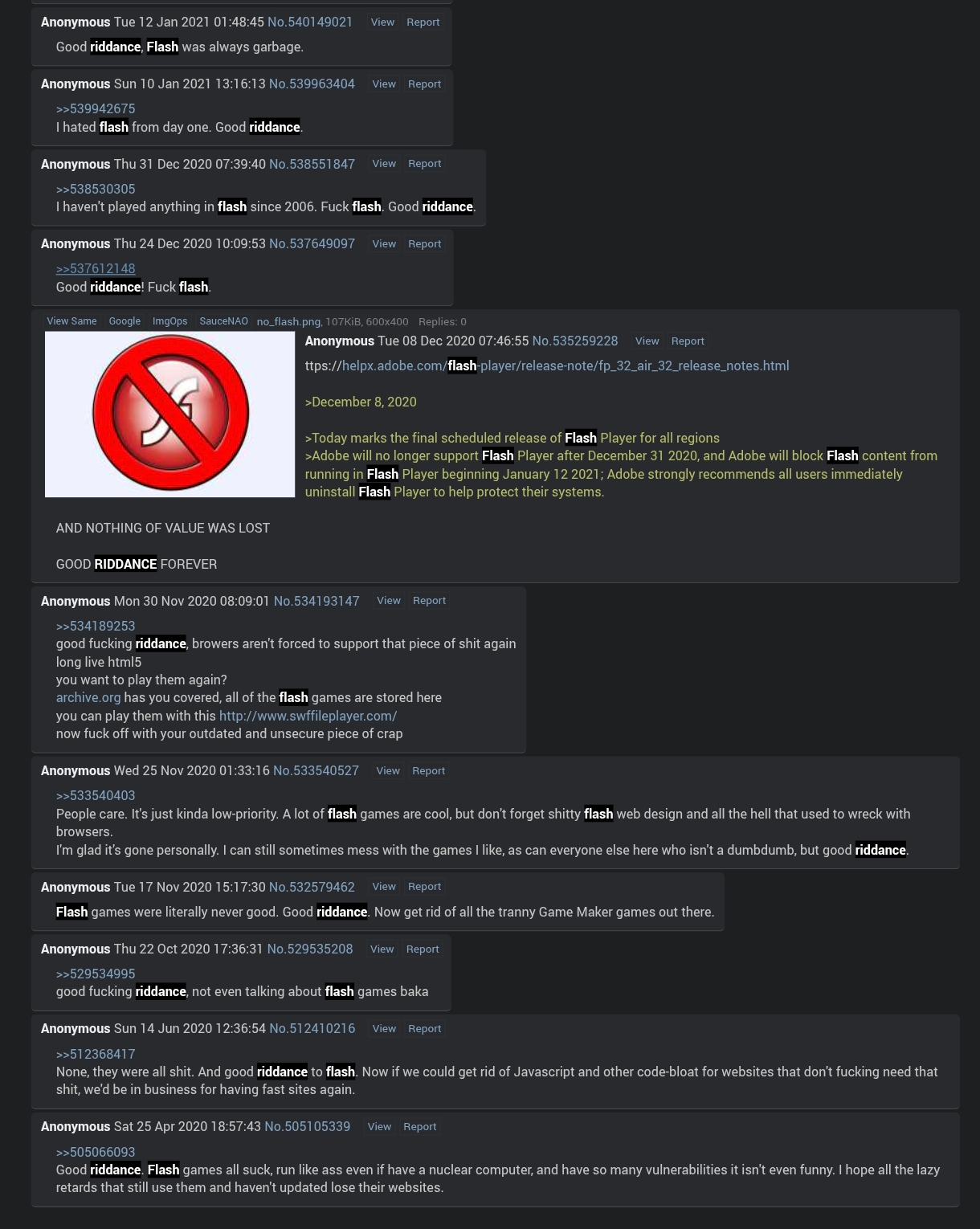>>731149868>>731150149>implying oldfags werent saying good riddance to flash on its deathbed