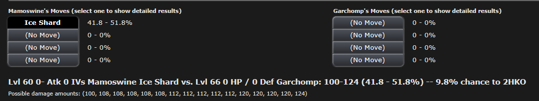 >>731171893Okay but chances are your Mamoswine doesn't have 0 ATK EVs or IVs and a negative personality either. Just having an average 15 ATK IVs turns Ice Shard into a guaranteed 2HKO at level 60. And if you've been using him semi-regularly he should should have ~60 EVs at least. Give him a Nevermelt-Ice and he starts chunking upwards of 70% of Garchomp's health. It adds up quick.