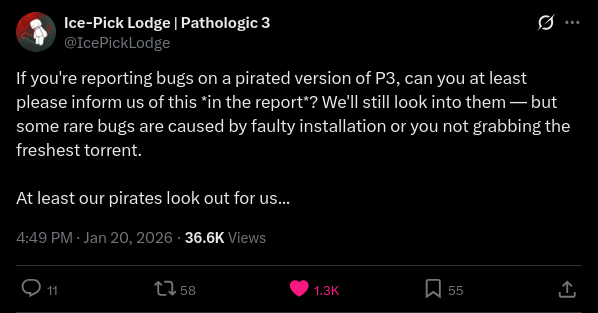 New hotfix is out.>We have a tradition: after every release, we give out ice picks (real, physical ice picks, heavy and made of metal) to everyone who helped get the game out the door and doesn’t have one yet. Yesterday, our newest team members also gained the ability to commit political assassinations.Game is still a buggy mess, but I can't be mad at these devs.