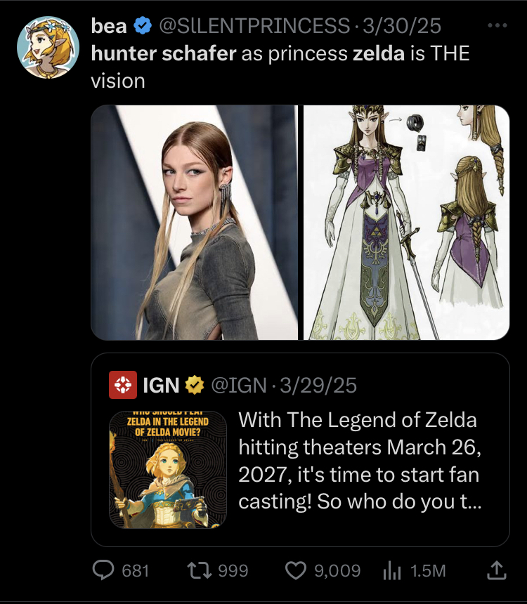 >>731412832Lmaoo that’s the troon that tried to push Hunter Schafer as Zelda. This was the source of those baseless “rumors” that others made up.