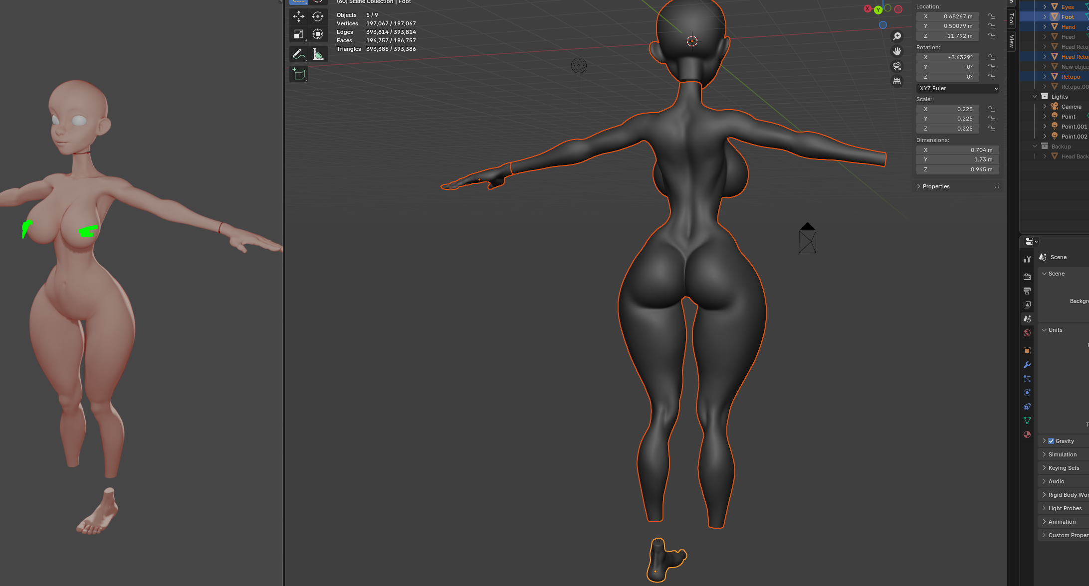 >>731422254also don't worry about the poly count - I'm not that retarded. It's just the hand and foot haven't been retopo'd yet, so they contribute about 350,000 tris alone. I'm not making a toothbrush here.