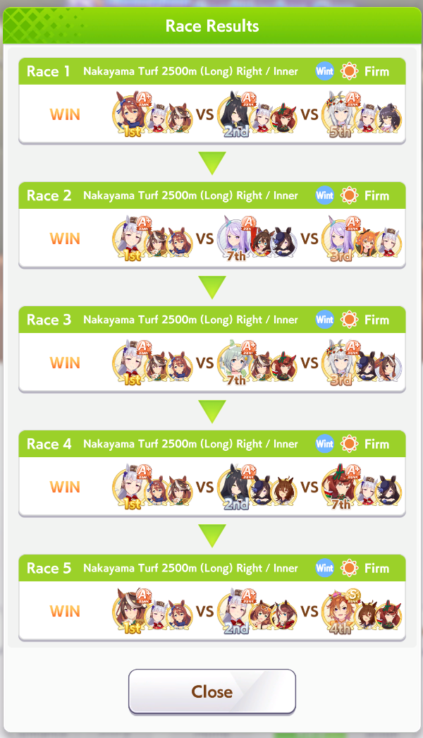 Yeah I don't understand this game at all.First 3 tries I got 0-5, 1-4, 1-4, doomed by the thought of joining group B for the first time.Then suddenly I got 5-0, even 2 of the races are against whales with 4 MLB SSRs.