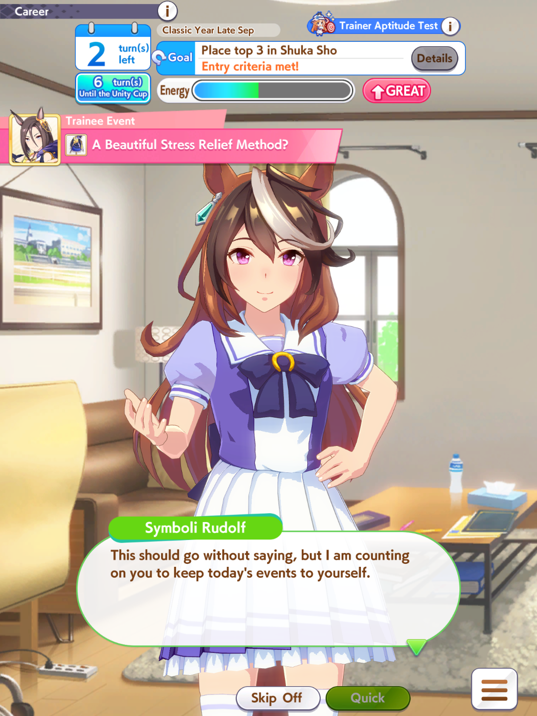 Going back to URA is so comfy. Join me in the parent mines lads. No more constant unskippable popups telling you about the countdown to the next unity match. No more ball animations. No more ball rng.And some real fucking stats for just clicking a training.