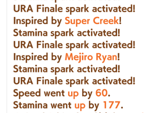 >>731495556i remember some guy here posting an inspitaions event that gave like 100 speed 200 stamina or something similar. URA sparks are busted if several proc at once
