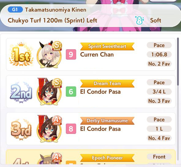 >1-4>0-5>0-5Yup yup! Staying in the B leagues, I want to see some variety, not five trillion Taishin's and Gold Ships