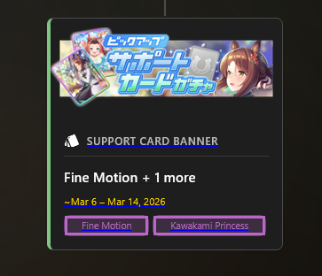 >>731495438I pulled Kawakami Pirncess on Fine's banner. Eishin and Christmas Oguri are the only ones I actually pulled from the banners you're supposed to get them on.