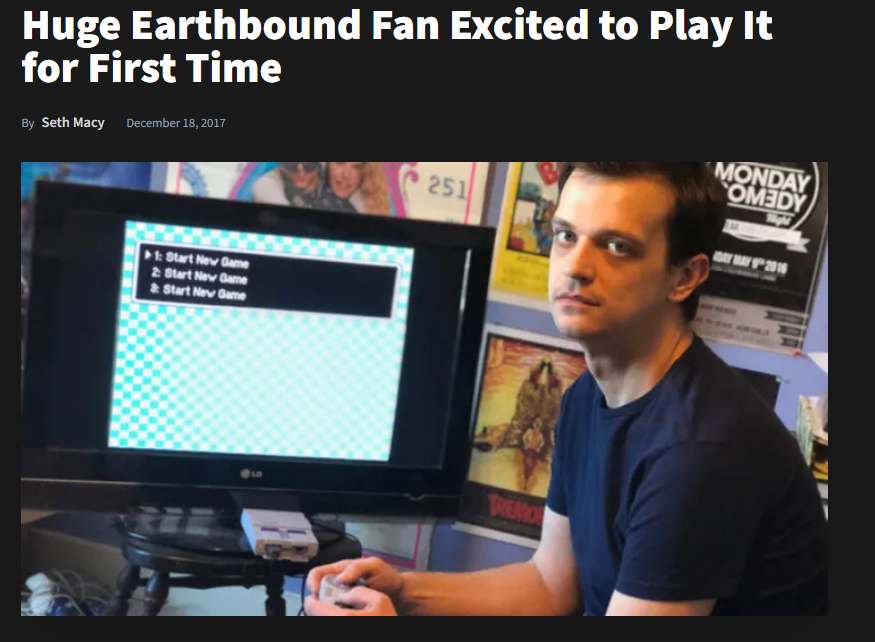 >>731556990Anon, that's a reference to this satire articlehttps://thehardtimes.net/harddrive/huge-earthbound-fan-excited-play-first-time/