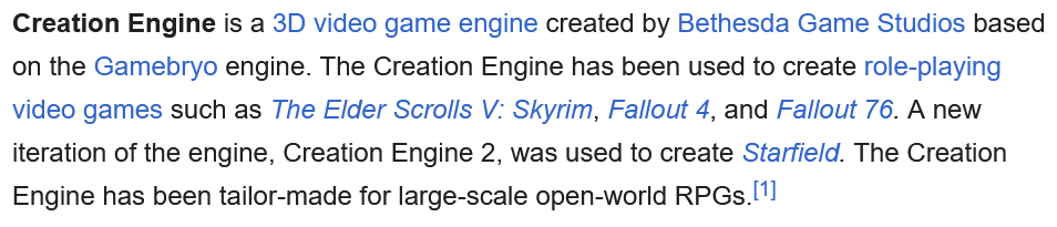 >>731592875>>731592975Wether people like it or not, CE a good engine for what it needs to do. Modders were able to make CoD/STALKER/Souls within Fallout/Skyrim. It all depends on who uses it.