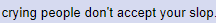 You're doing nothing more than screaming and crying people don't accept your slop. Just fuck off.