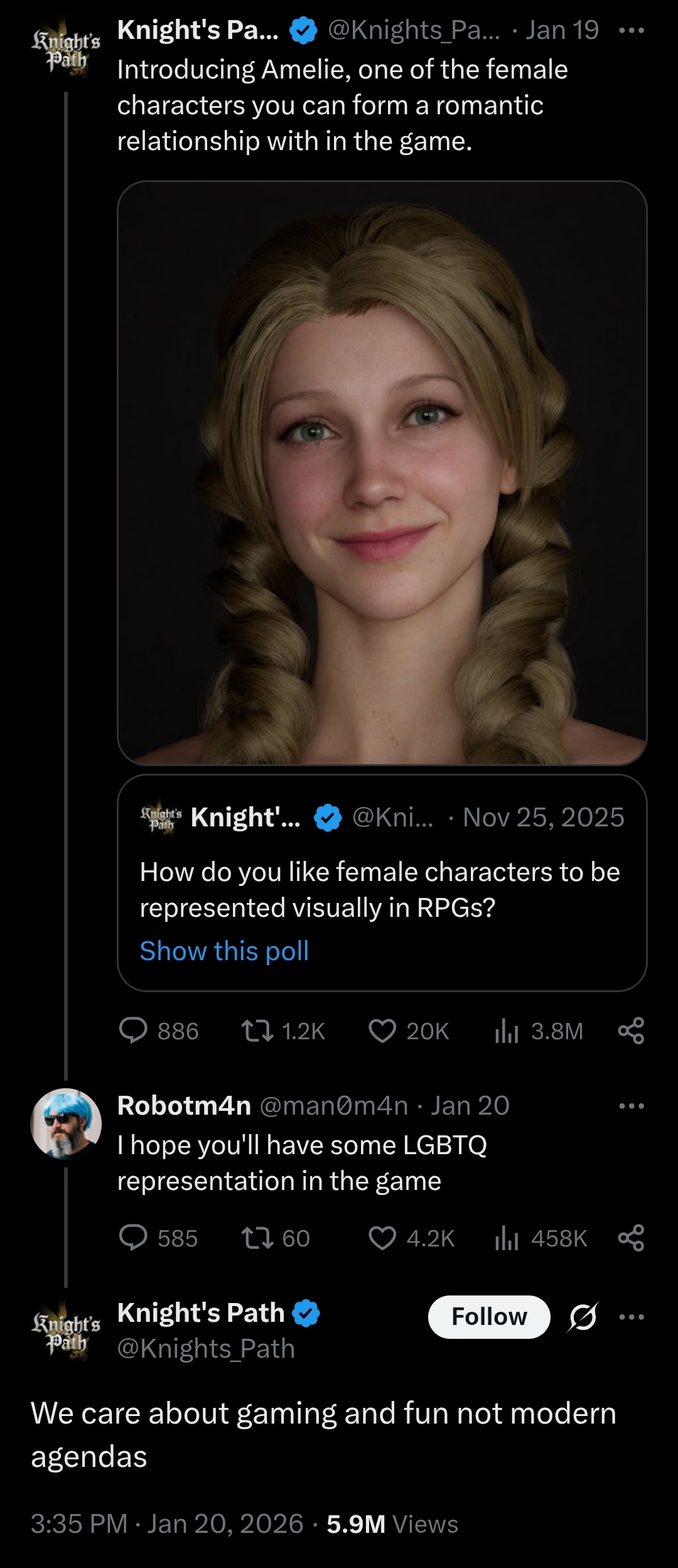 > Dev is ripping off KCD so bad they are even trying to get the chuds to support their first game and trying to get attention by talking about culture war shitAmazing. And like usual, /v/ is falling for it again. HAHAHAHA