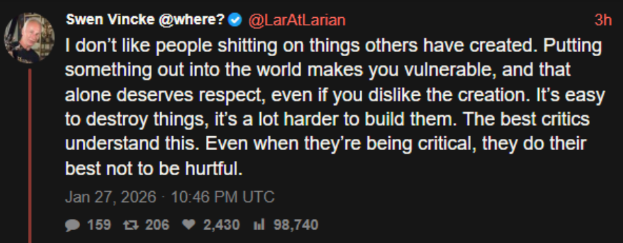 The game is fine, honestly. A little boring, but playable. Some tweaks could make it much better.More to the point, I agree with this article somewhat, only because these threads are filled with people who have obviously not played the game at all. They regurgitate whatever buzzword slop that their favorite Youtube streamer said about it. Or possibly even have been paid to say...?This entire thing seems so bizarre to me, because its such a nothing game. It does a few things well, and it does a few things poorly. That's like every popular game: CoD, Rivals, Arc Gayders, WoW, Valorant. All these games do some things well, and some things poorly. But they aren't ripped to shreds on a daily basis.I think if Highguard is guilty of anything, it's offering a bare bones experience. If you do not like the raid mode, that's it. There is nothing else for you.