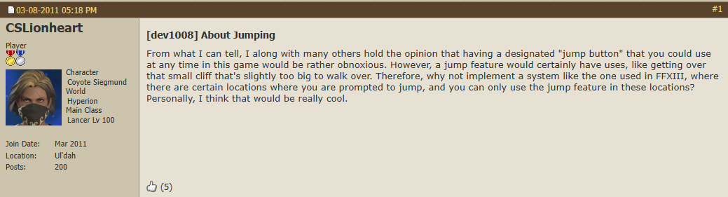 >>731736552>>731736584Its kind of funny reading this old OF threadhttps://forum.square-enix.com/ffxiv/threads/546-dev1008-About-Jumping