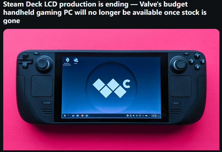 >>731757106they're no longer going to produce the LCD decks but will continue to produce the OLEDwhat a pointless mislead you're trying to pull, why bother