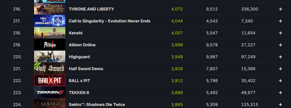 >>731885834>Even games that peak early and drop off get hills and valleys. This just flatlinesValleys are there at 10:00 UTC, but yes peaks are not really a thing here, more like three small hills