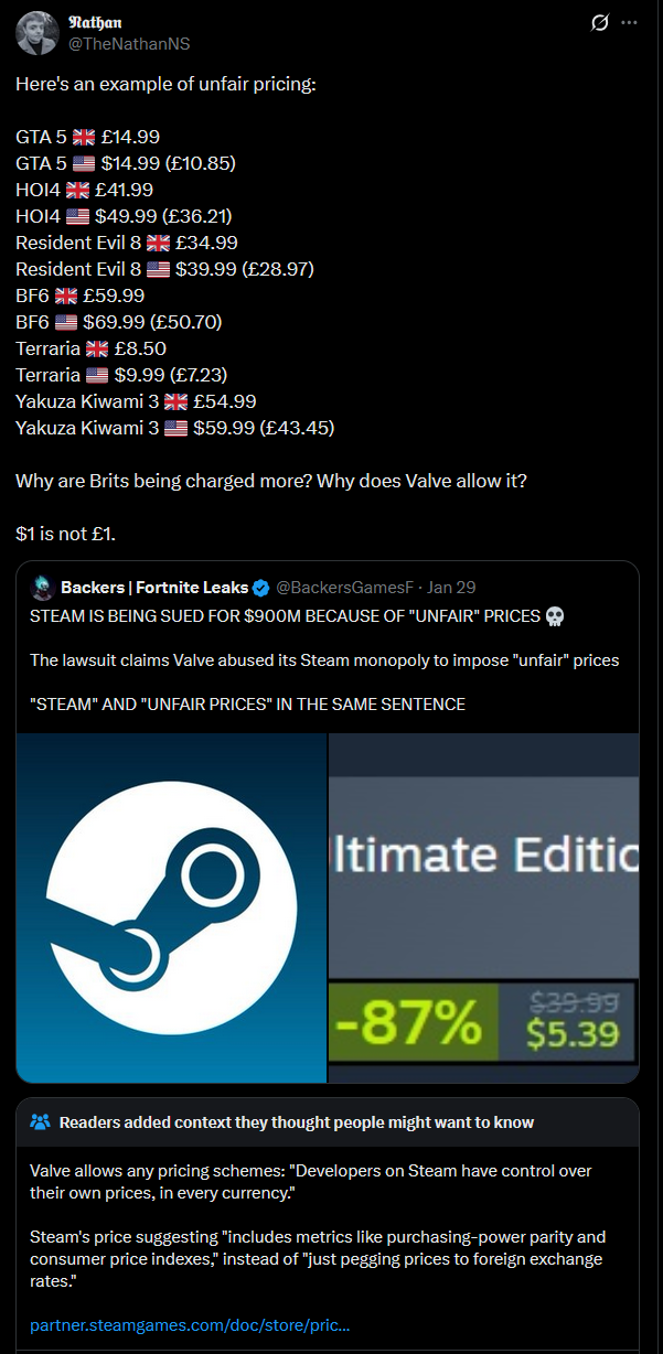 >>731921949UK residents are mad at high prices and blame Steam instead of their government, who is actually responsible