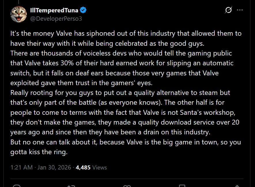 It must suck to be valve where you do nothing so people just have to make shit up to seethe at you about. Then other people join them because its opportunistic to do so. Timmy is just a lying hypocrite and the best example but this UK lawsuit is literally being done by a litigious company that has been suing game companies for year hoping for a settlement instead of a win.
