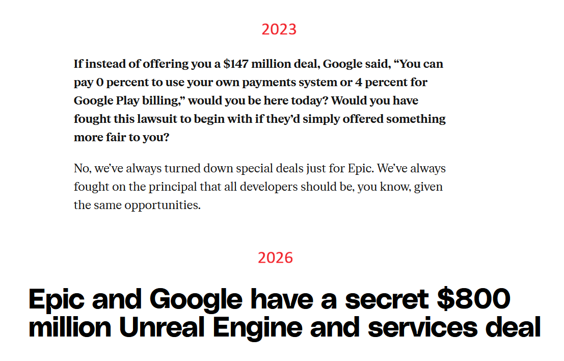 They changed it right before the court case with Epic