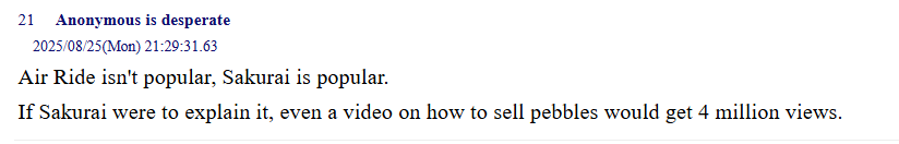 >>732147310>>732147576>>732147703In his defense, you don't need to love EVERY Nintendo franchise to be a Nintendo fan. You can like a few franchises and the overall spirit of the brand and still be a fan as a whole. To me, those videos work because he's clearly speaking from the perspective of a newbie, which many people are. Speaking for myself, I've only recently playing the Pikmin games 3 on Switch was my first and would consider myself a fan of the series. You don't need to born with Pikmin toy in hand to be a fan. My problem with him comes from his lack of research on more objective topics like finance and him trying to gage public sentiment through his limited audience. Just because #LowerThePrice was trending on Xitter doesn't mean Nintendo's going to have a bad 2026.also>Sonic thread