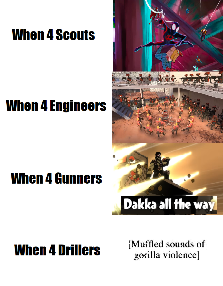>>732198486>Get to end screen>Every has 300+ kills>Scout has 50They're a drain on resources >Muh lighting, muh mineralsWe get infinite flares and can mine as we go. Don't need some retarded spastic flying around, ignoring enemies and calling molly away from the group to deposit 40 gold. Shit class favored by shit players