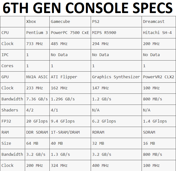 >>732165472Fucking retards think processing power defines the generation of a console, or even what capacity it has to become a successful competitor, if we want to move goalposts.The Dreamcast was a proper gen 6 machine through and through, it was Sega themselves that pulled the plug early, not entirely but probably by all the prior failures and bad faith from consumers and devs since the Sega CD. While Sony had all the devs by the balls with how beloved the PS1 was.Remember the Wii was a slightly, barely, upgraded Gamecube, and the Switch a literal tablet that had worse specs than a flagship phone released a year after (Galaxy S8, iPhone X), and those two consoles are on the top of the most sold consoles in history, fuck, people are still buying the Switch 1, 9 years after release.