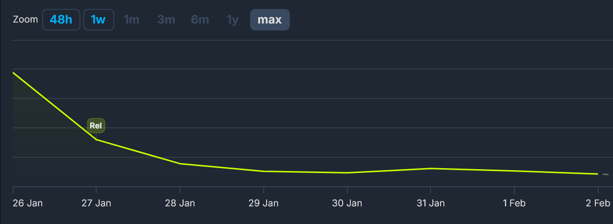>>732167641>>732193584https://steamdb.info/app/4128260/charts/SteamDB isn't merciful either.