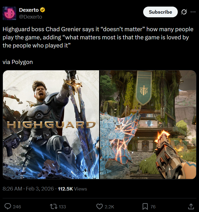 >>732175243>Highguard Was Planned As A Shadow-Drop, But Geoff Keighley Had Another Idea>Studio cofounder and game director Dusty Welch said the plan was always for Highguard to be a "quiet shadow-drop.">That was the plan, at least until Keighley told Wildlight he loved the game and had an idea. He wanted to highlight the free-to-play shooter from an independent studio>"He came into the studio and played the game I think twice and he said, 'Guys, can I propose to you, I want to do something that's unique...I want to put it in this spot and kind of do something different and bring this to the world,'" Welch said. "And that wasn't our plan, but like, are we going to turn down the exposure...Who would turn that down?"Geoff literally fucked them