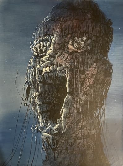 He starts vomiting and has a mass of insects escape from his body and they swarm him as they eat him alive