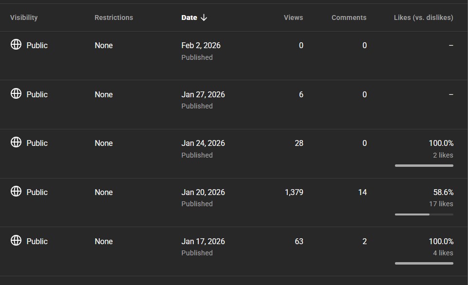 >>732201007the other anon i watch a lot is like that. all videos with 5-20 views and one randomly with 100k views lol