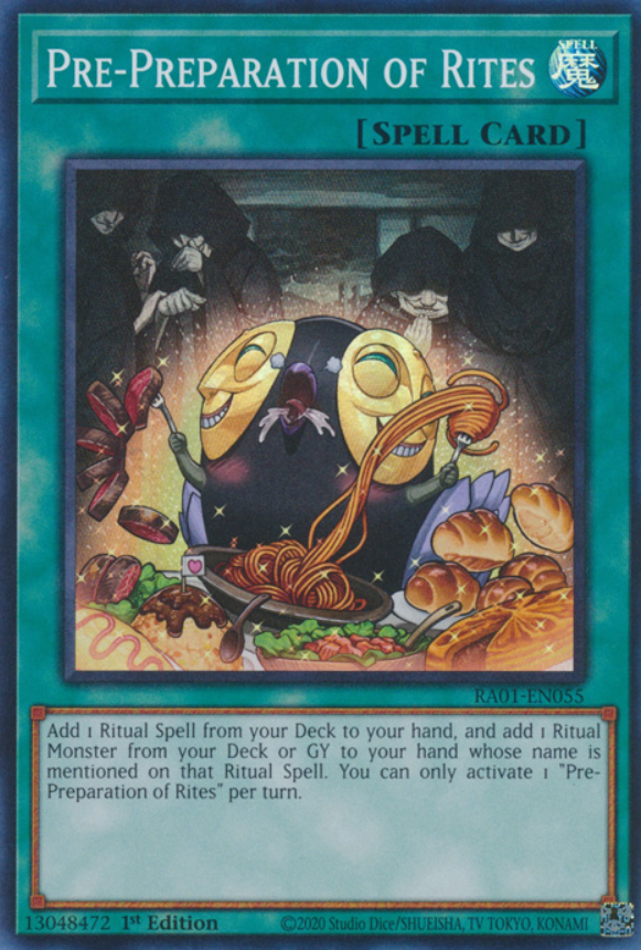 >>732205198You can't actually since the ritual spell is the one that needs to have the ritual monster's name in it's text, you can use pre-prep to search dogmatikamacabre and either white relic or white knight though